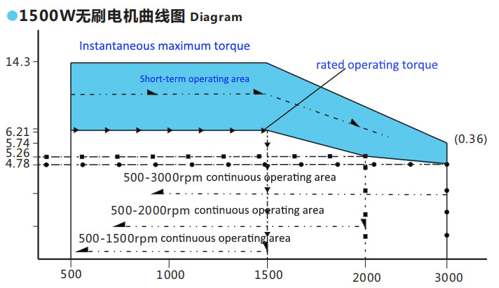 Werkend gebied op korte termijn: wanneer de motor bij verschillende snelheden roteert, kan het bij een korte snelheid binnen dit torsiegamma lopen. Het zal de motor als het oude lopen verwarmen, die kan verbranding of het drijven van de het oververhitten veroorzaken bescherming, die tot sluiting leidt;